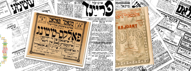 Jewish newspapers and advertisements from Vilnius in the period between the two world wars. Jews and other minorities were given equal rights in the reconstituted Lithuanian state. Yiddish thrived with many newspapers and books published in the language.