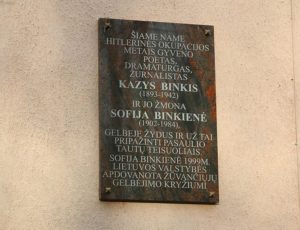 Ketvirtadienį Kaune, Vydūno al. 45, atidengta atminimo lenta poetui, dramaturgui, žymiam visuomenės veikėjui ir humanistui Kaziui Binkiui. „Šiame name hitlerinės okupacijos metais gyveno poetas, dramaturgas, žurnalistas Kazys Binkis ir jo žmona Sofija Binkienė, gelbėję žydus ir už tai pripažinti Pasaulio Tautų Teisuoliais. S. Binkienė 1999 m. Lietuvos valstybės apdovanota Žūvančiųjų gelbėjimo kryžiumi“, – tokie žodžiai įrašyti atminimo lentoje.