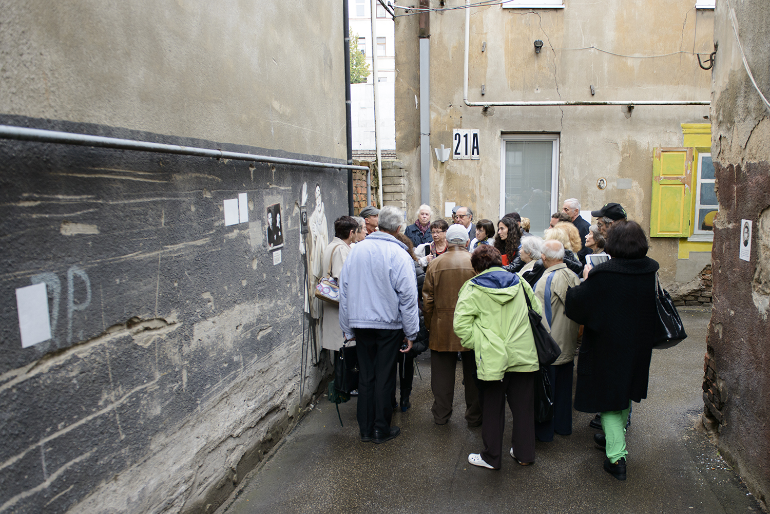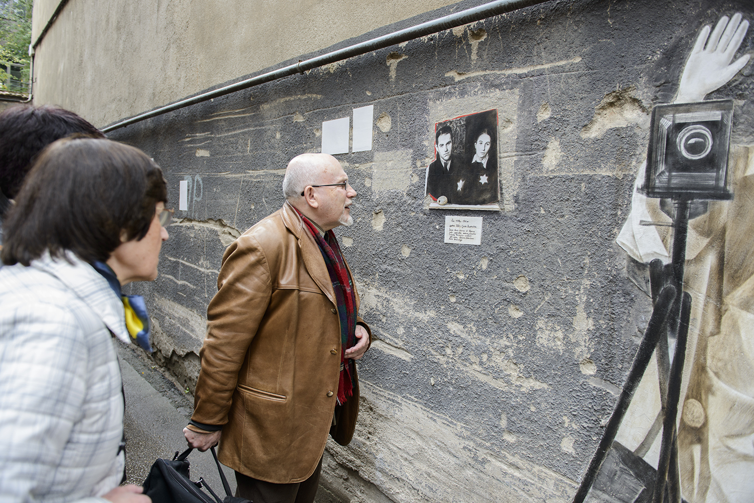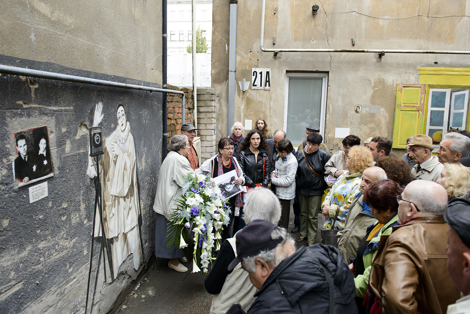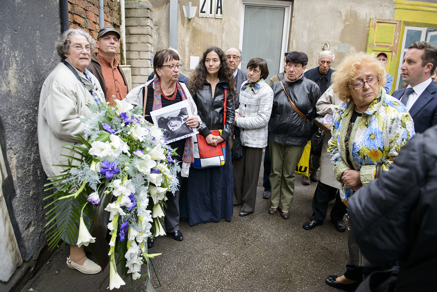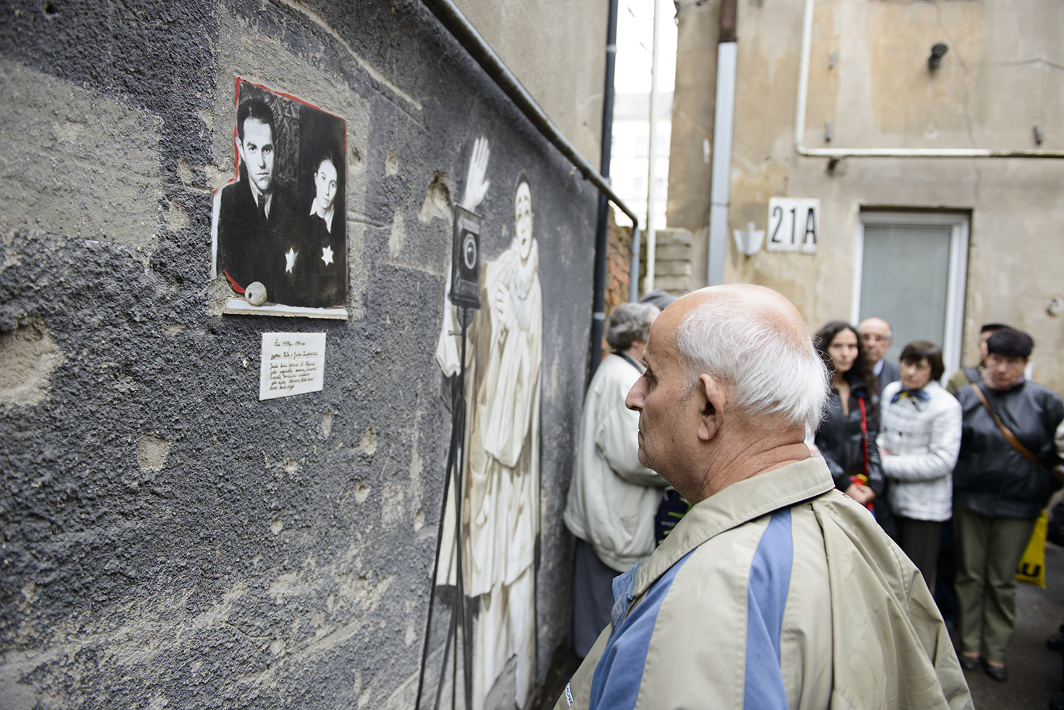 Kauno geto likvidavimo 70-ųjų metinių minejimas. Buvusios geto kalinės Ditos Sperling ir jos vyro, didvyriškumu pagarsėjusio geto policininko Judos Zupavičiaus portretų-freskų atidengimas Kaune Ožeškienės g.
