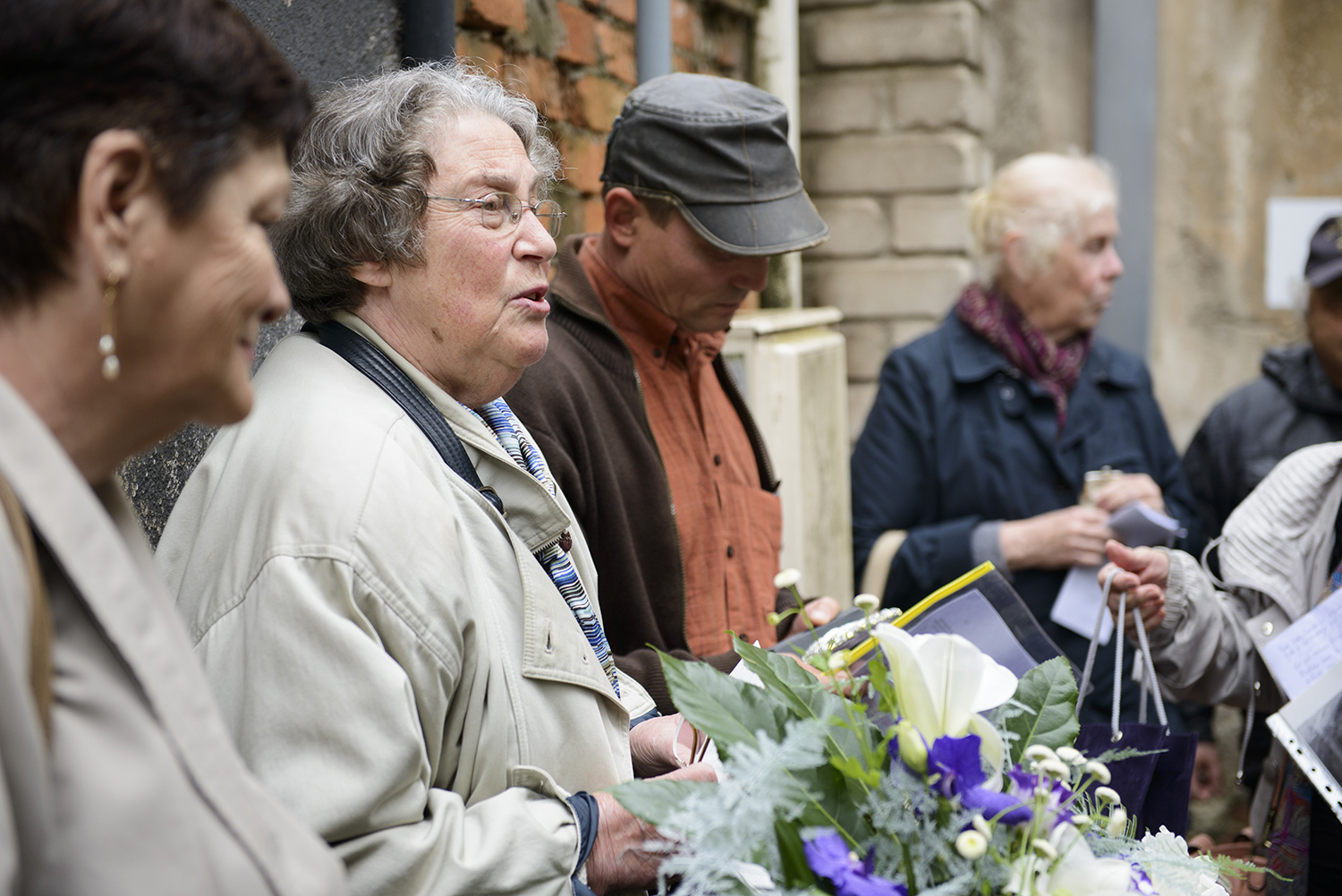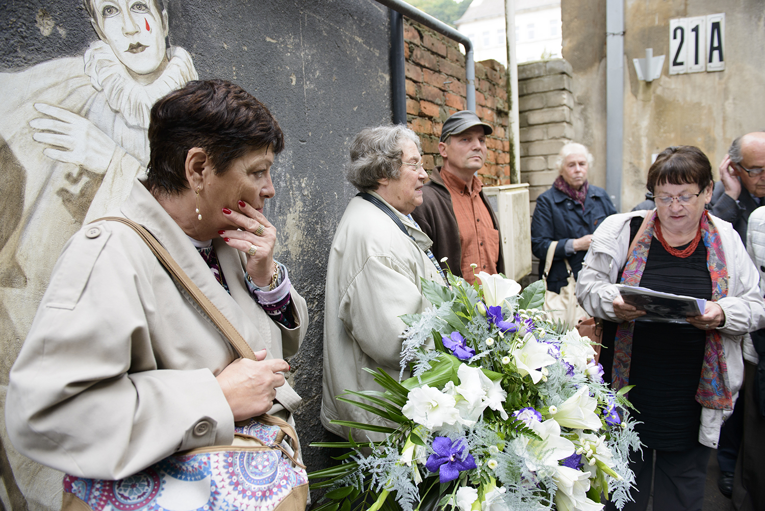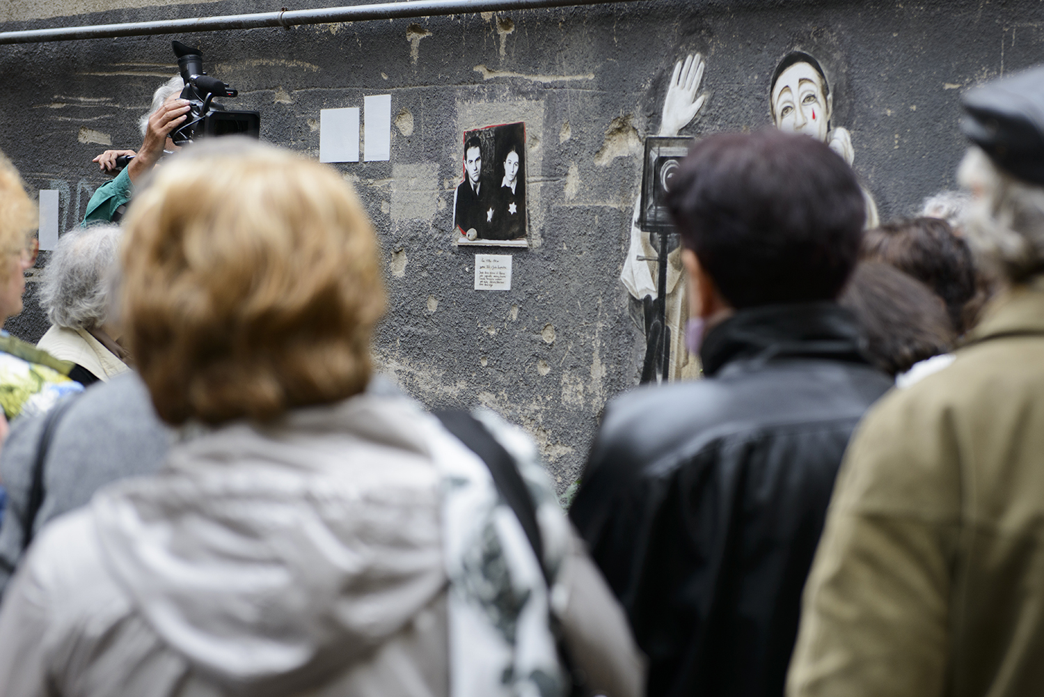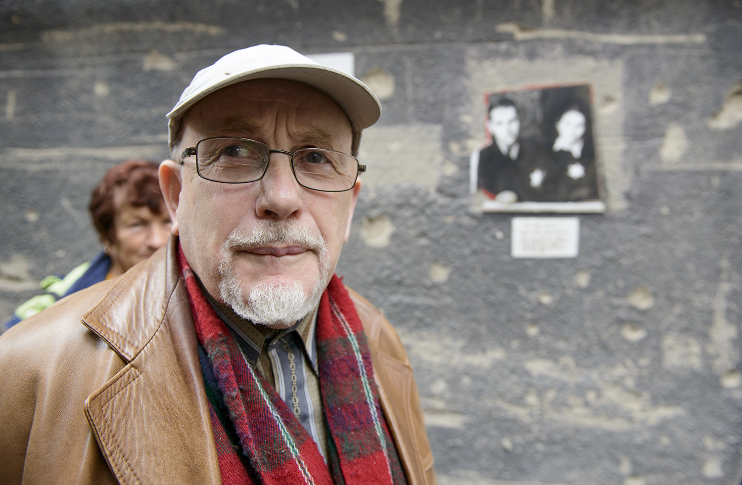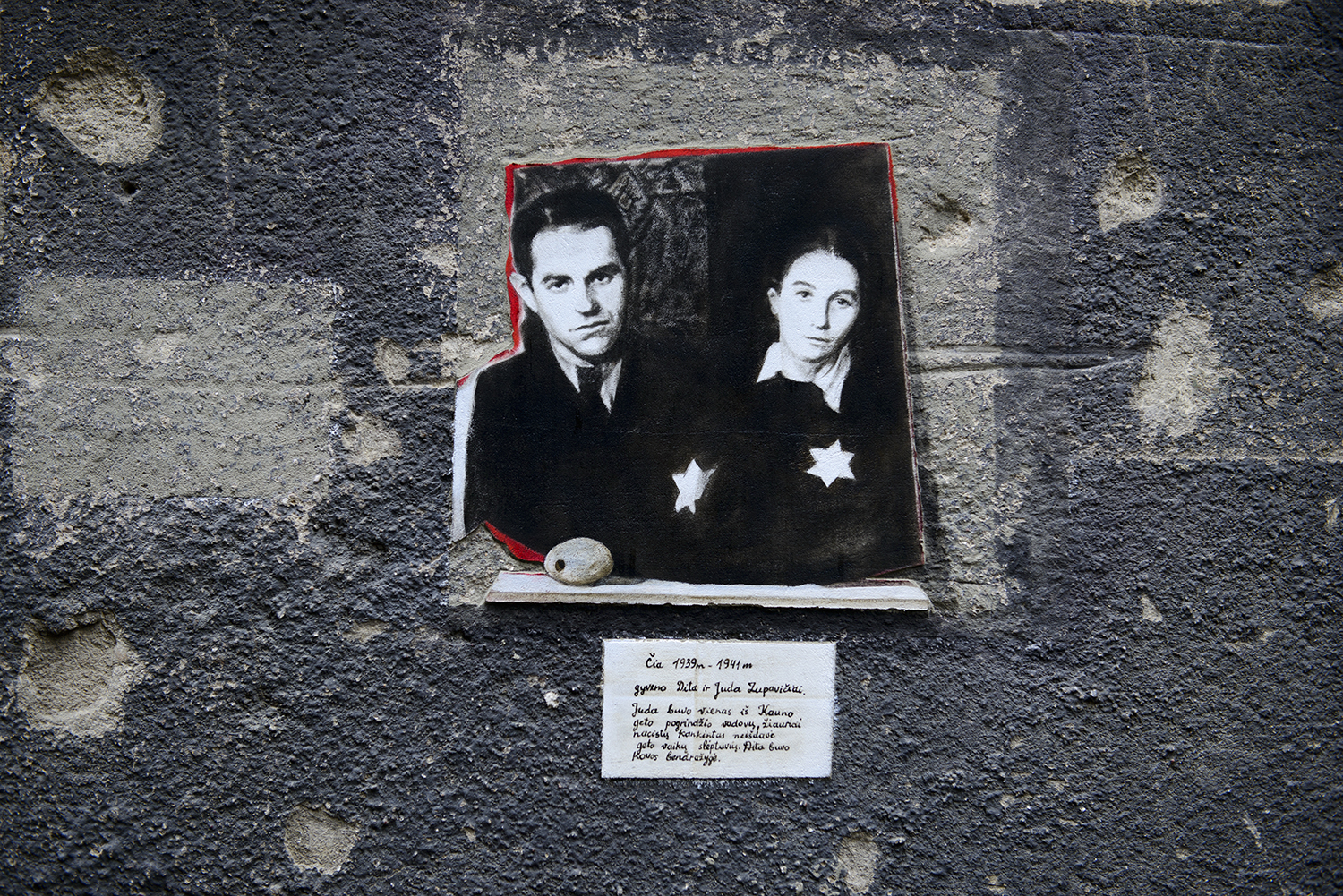 Kauno geto likvidavimo 70-ųjų metinių minejimas. Buvusios geto kalinės Ditos Sperling ir jos vyro, didvyriškumu pagarsėjusio geto policininko Judos Zupavičiaus portretų-freskų atidengimas Kaune Ožeškienės g.