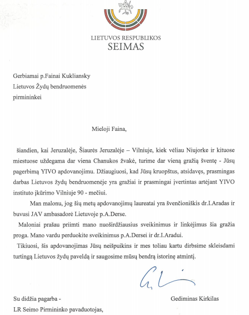 Nuoširdžiai sveikinu Hanukos proga.
