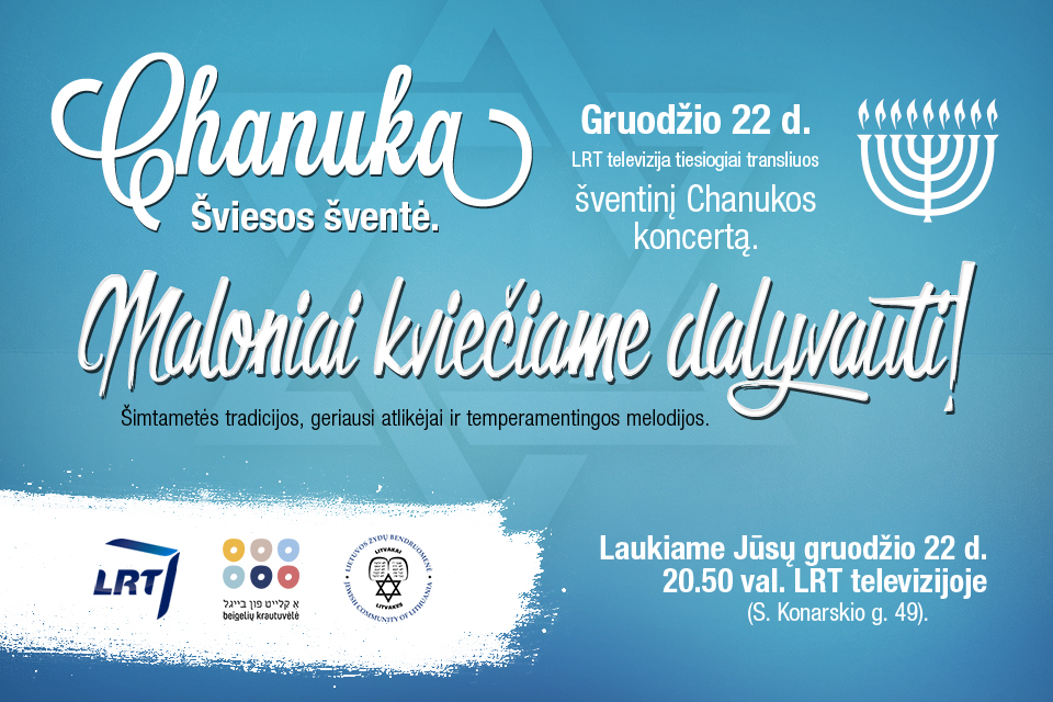 Pirmadienį, gruodžio 22 d., LRT televizijoje vyks tiesioginė laida skirta Chanukai, taip patkoncertas, paruoštas “Auksinio balso” komandos.