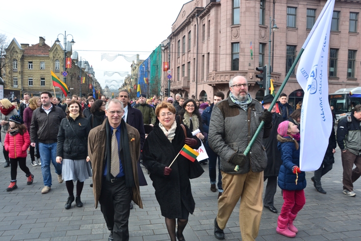 Kovo 11-osios šventinė eisena Vilniuje su LŽB vėliava 2015-03-11 ← Švęskime Lietuvos Nepriklausomybės atkūrimo 25-metį kartu! LŽB pareiškimas po Tautinio jaunimo sąjungos ir Lietuvių tautinio centro eitynių kovo 11-ąją Lietuvos Nepriklausomybės atkūrimo dieną →