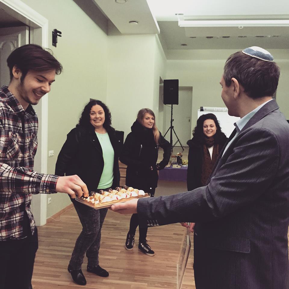 ,Po visko turėjome progą pasivaišinti pačių gamintu izraelietišku maistu – falafeliais, humusu. O viename iš falafelių slėpėsi siurprizas ir dovana vienam iš dalyvavusių.
