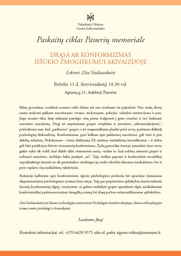 Kontaktai informacijai: tel. +370 6628 9575 arba el. paštu zigmas.vitkus@jmuseum.lt