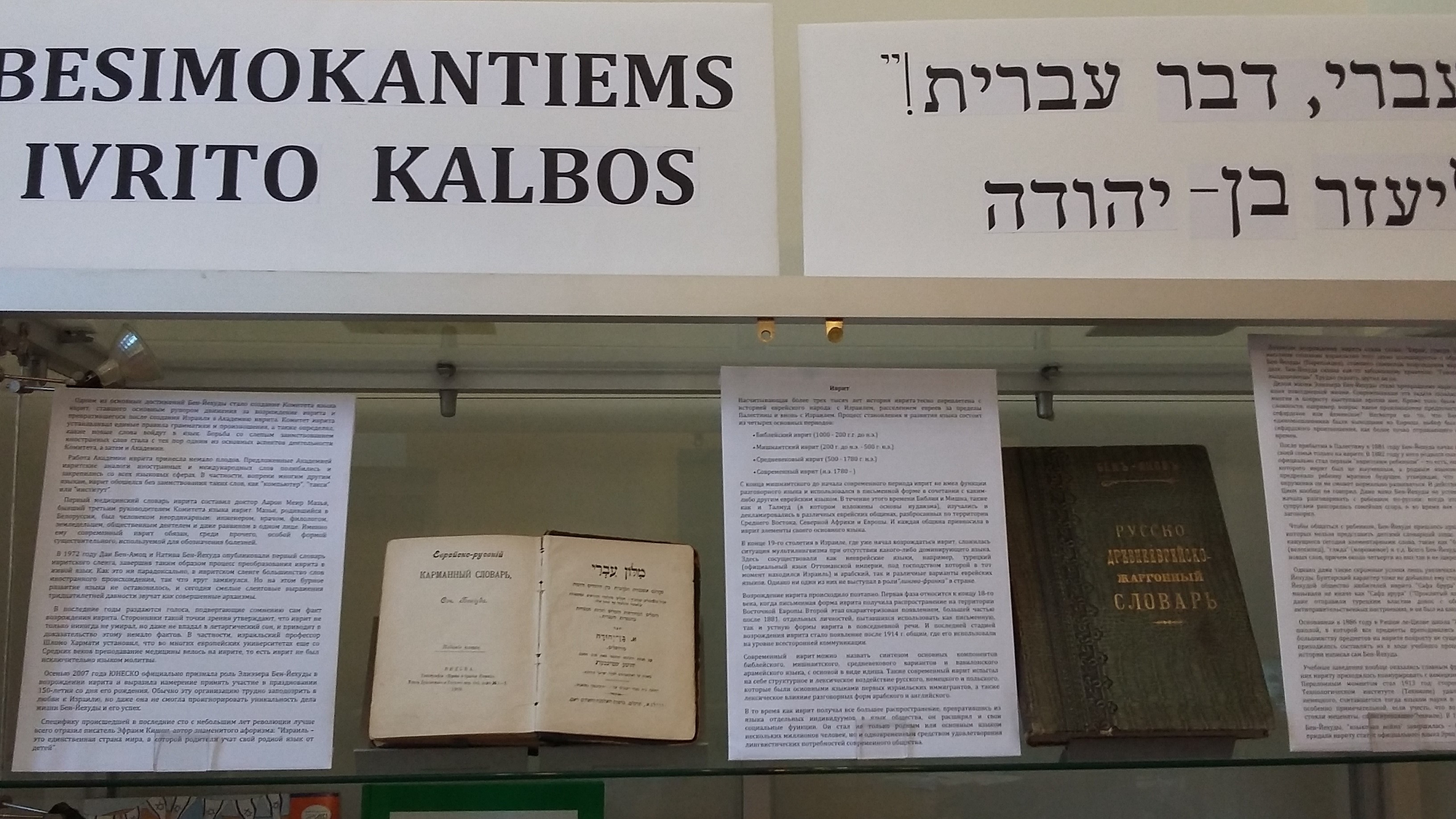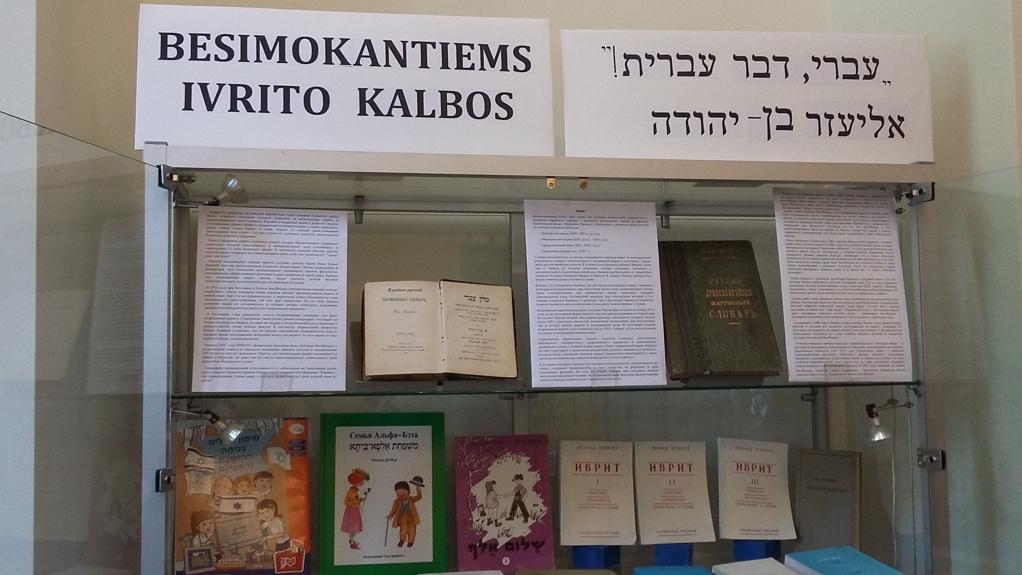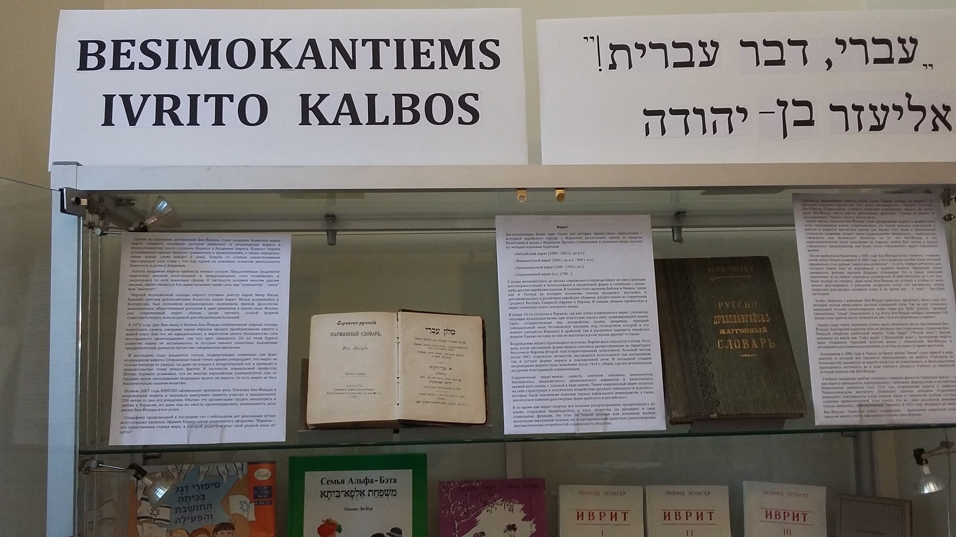 LŽB foje Pylimo 4 veikia parodėlė, kviečianti susipažinti su vadovėliais ir ieškoti galimybės patiems ar kursuose mokytis hebrajų kalbos iš vadovėlių, esančių bibliotekose. Norinčių mokytis pastaruoju metu daugėja. Kai tik atsirado galimybė iš Vilniaus tiesiogiai nuskristi į Tel Avivą per pusketvirtos valandos, iškart išaugo skaičius žmonių, trokštančių keliauti ir pamatyti Šventąją Žemę. Kad kelionė būtų įdomesnė, gerai būtų mokėti kalbą. Poreikis mokytis yra, bet vadovėlių hebrajų – lietuvių kalbomis nėra. Hebrajų – rusų galima surasti. Štai ir parodėlėje tik hebrajų (ivrit) – rusų k. pradžiamoksliai, įvairūs žodynai, vadovėliai – viskas rusų kalba. Atėjo laikas svarstyti ir vadovėlio hebrajų – lietuvių k.vadovėlio poreikį.