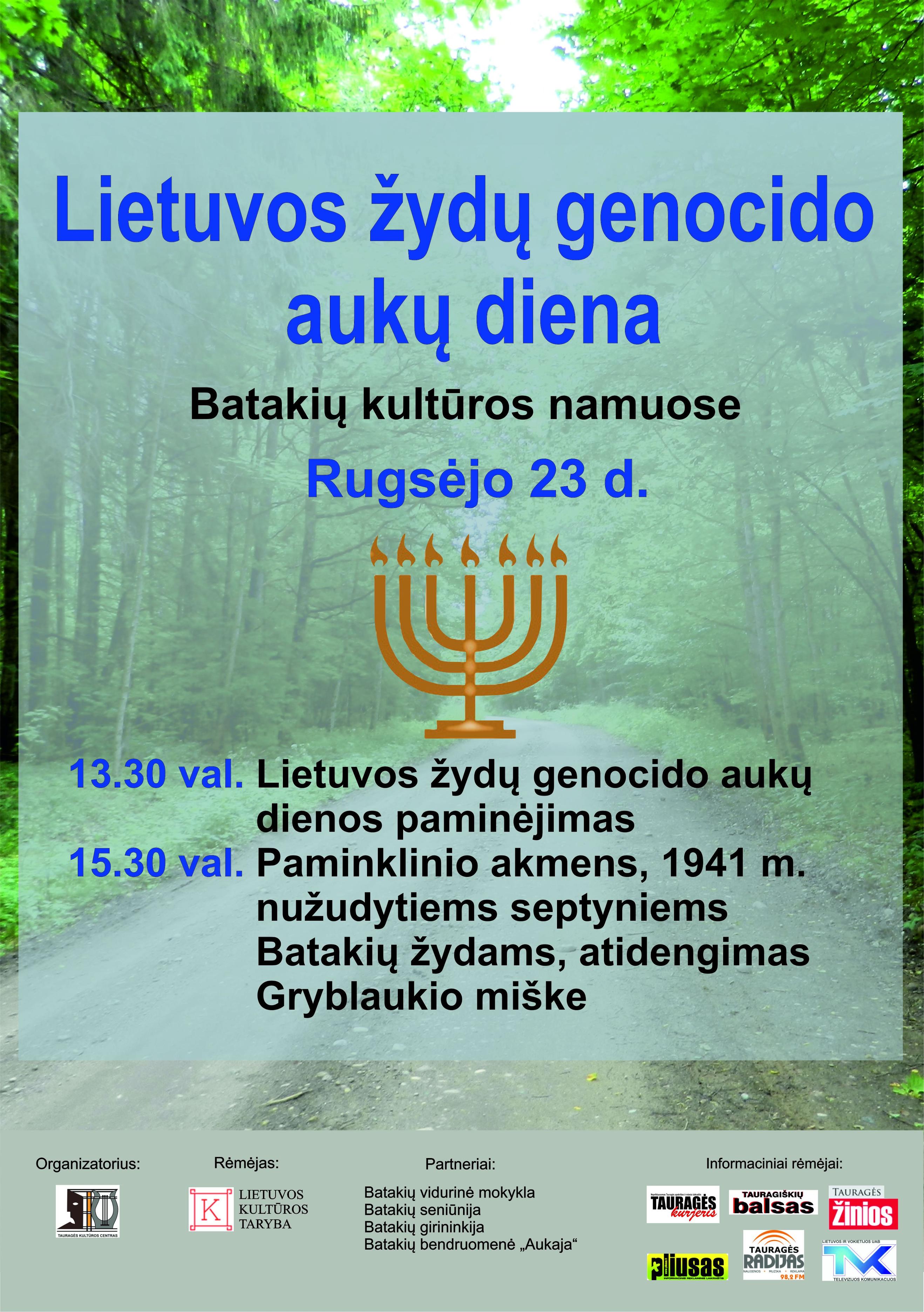 Tauragės Kultūros centro rūpesčiu Gryblaukio miško 84 kvartale (Tauragės r. sav. Batakių sen.), prie Batakių miestelio 1941 m. žydų žudynių vietos pastatytas paminklinis akmuo. 2015 m. rugsėjo 23 d. Lietuvos žydų genocido aukų dieną bus pagerbtos aukos ir atidengtas paminklas. Rugsėjo 23 d. 13.30 val. Batakių (Tauragės r. sav. Batakių sen.) kultūros namuose vyks Lietuvos žydų genocido aukų dienos paminėjimas ir paminklo atidengimas Gryblaukio miške (3 km nuo Batakių miestelio).