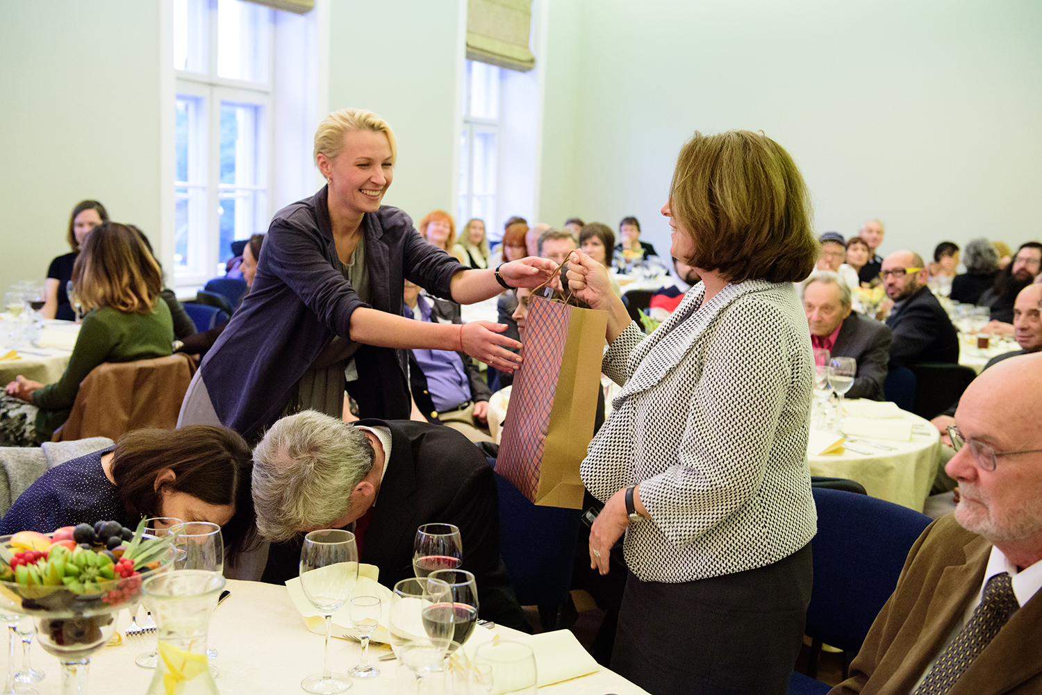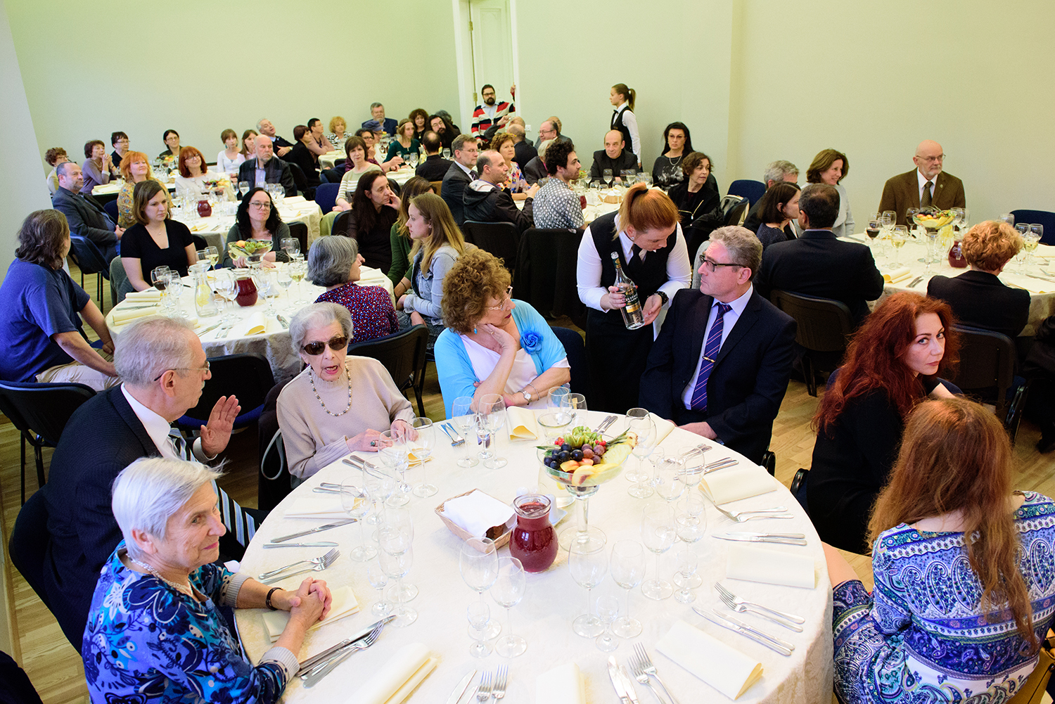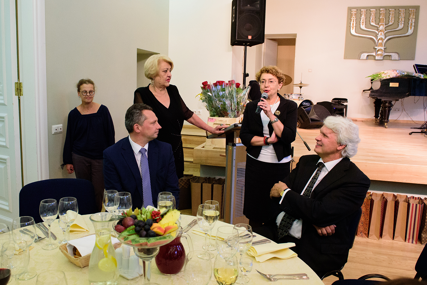 Po dienos trukmės konferencijos Lietuvos Seime sekmadienį, rugsėjo 20d. pažymint 90-ąsias YIVO įkūrimo Vilniuje metines. Lietuvos žydų bendruomenės pirmininkė Faina Kukliansky pakvietė visus organizatorius ir dalyvius į, ta proga LŽB buveinėje Vilniuje surengtą, padėkos vakarienę.LŽB pirmininkės pavaduotoja Maša Grodnikienė pasveikino svečius jidiš ir lietuvių kalbomis po to pakvietė YIVO ir LŽB darbuotojus prie dovanų – specialiai YIVO metams išleisto 5776m. žydų kalendoriaus.