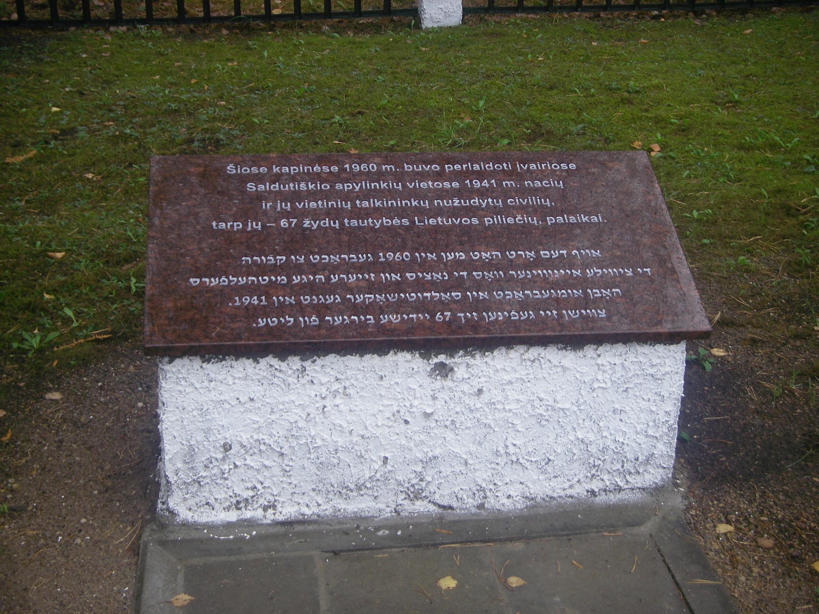 Saldutiškyje jau įrengta lenta vietoje, kur perlaidoti nužudytų žydų palaikai 2015-09-29 ← Gesher klubas – Sukkot ir rudens sezono pradžia prie Pailgio ežero Klaipėdos žydų bendruomenės naujienos →