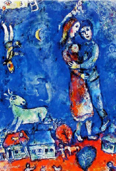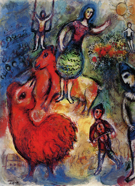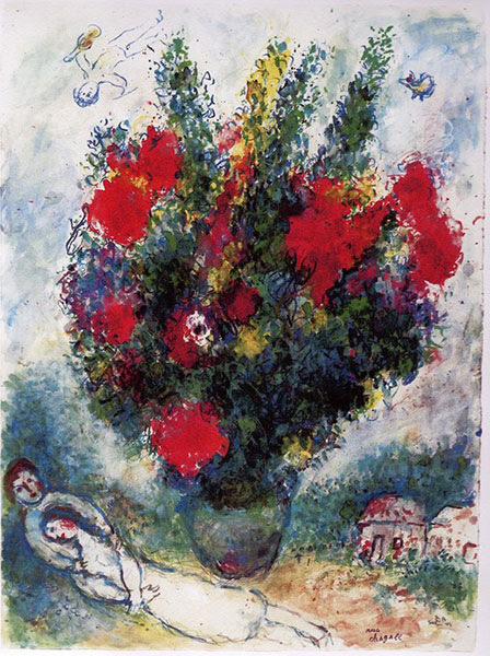 Litografijos technika menininkas susidomėjo 1920 m. Berlyne, mokydamasis iš vokiečių dailininko Hermanso Strucko. Norėdamas savo darbus pristatyti kuo platesnei publikai, M.Šagalas iliustravo knygas, kūrė keramikos darbus, vitražus, teatro dekoracijų dizainą. Menininką išgarsino jo darbuose pasikartojantys motyvai: sodrių spalvų milžiniškos gėlių puokštės, melancholiški ir sentimentalūs virš stogų skraidantys įsimylėjėliai, fantastiniai gyvūnai, bibliniai personažai ir kt.