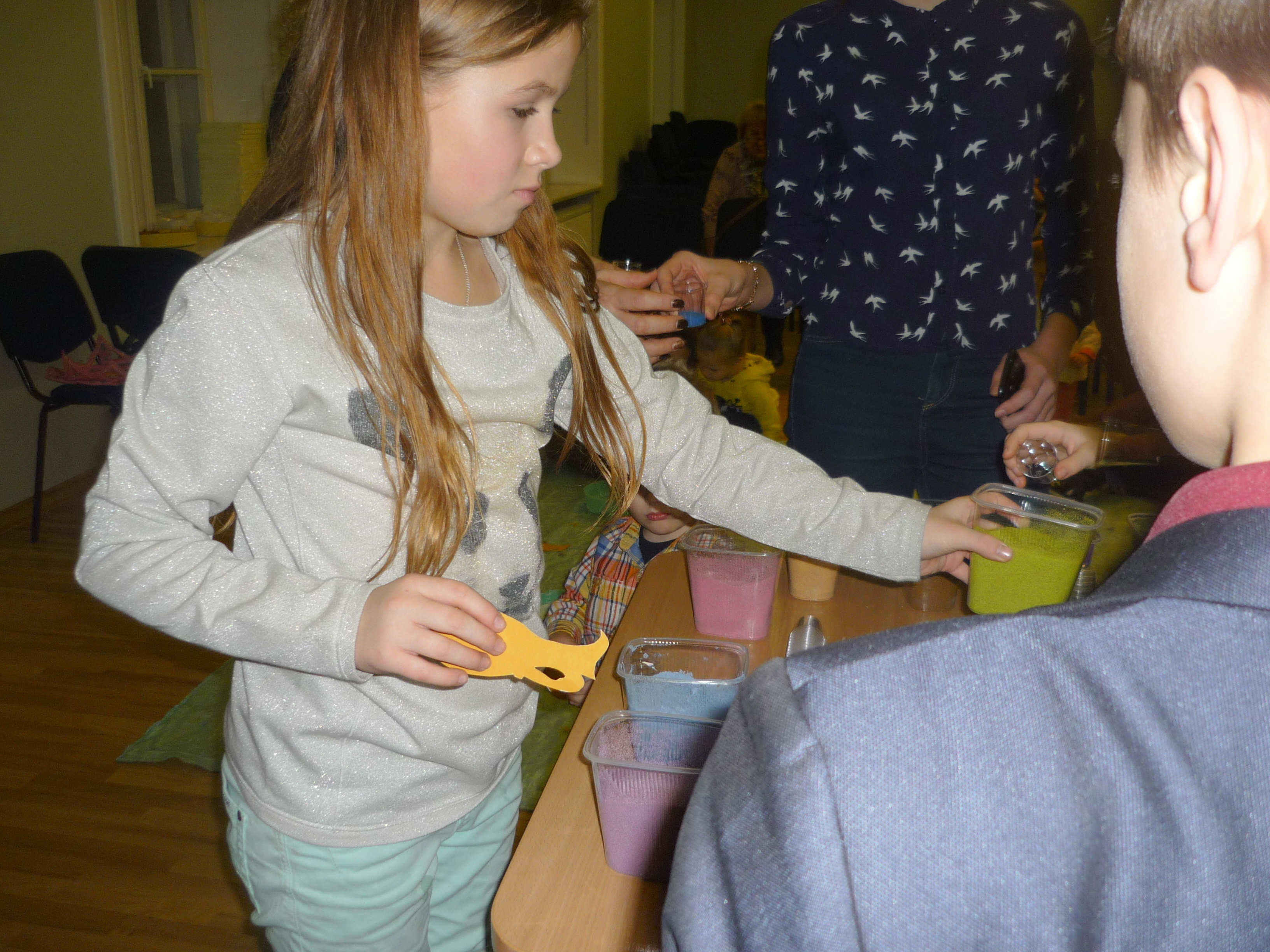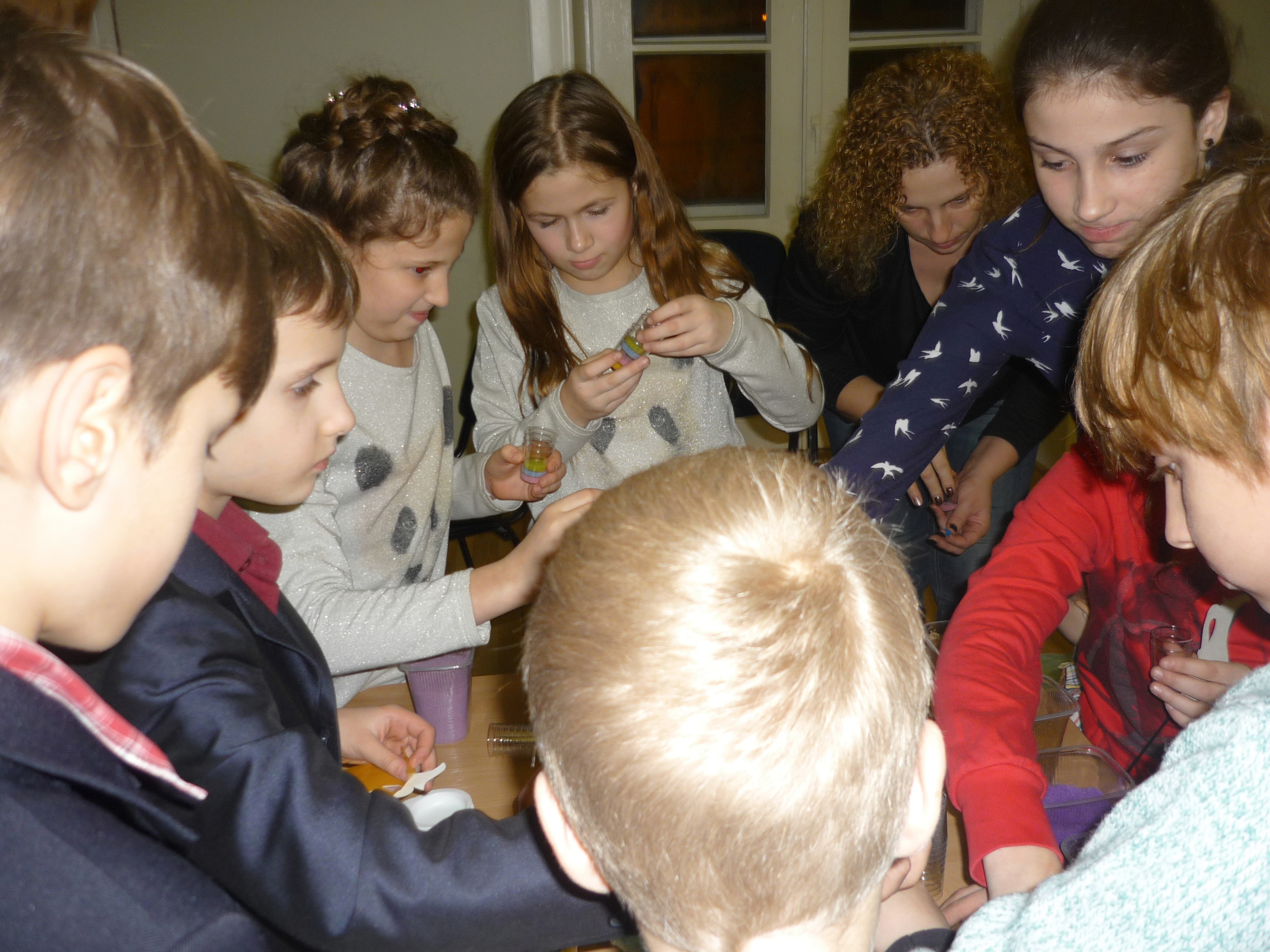Praėjusį ketvirtadienį, gruodžio 10 dieną, JFS (Jewish Family Service) programos dalyviai – vaikai su tėveliais dalyvavo jiems organizuotoje Chanukos šventėje – kūrybinėse dirbtuvėse. Renginį vedė patyrusi vaikų psichologė, kuri prieš kelerius metus vedė programos vaikams “Purim” šventę. Šventinio renginio pradžioje vaikai žiūrėjo trumpą filmuką apie Chanuką ir jos tradicijas, po to vyko kūrybinės dirbtuvės, kurių metu vaikai ir tėveliai bendromis pastangomis spalvotu smėliu dekoravo simbolinę Chanukiją (žvakidę). Vaikai entuziastingai iš spalvoto smėlio skirtingų spalvų spalvino Chanukijos liepsneles. Paveikslėlius vaikai tvirtino ant rėmo ir dekoravo įvairiais papuošimais. Po to, kai darbas buvo baigtas, sekė bendras lobio -Chanuke gelt (Chanukos auksas) ieškojimas, dovanėlių dalinimas, taip pat žaidimas su tradiciniu Chanukos Dreidel (vilkeliu) ir vaišinimasis šviežiomis, gardžiomis spurgomis.