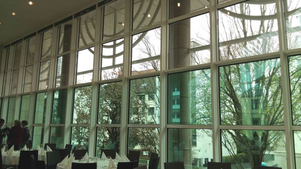 Frankfurto žydų bendruomenės valdyba renkasi prie apvalaus stalo, o taryba posėdžiauja salėje su nuostabiu vaizdu į miestą.