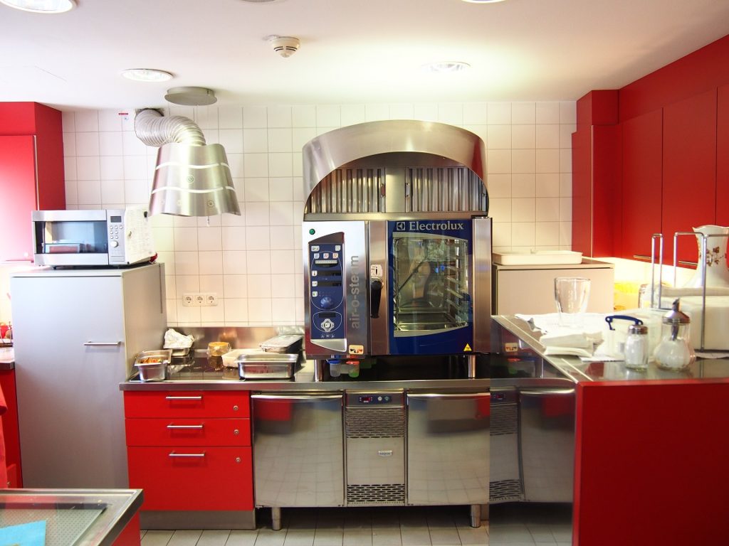 Virtuvės įranga čia super moderni, šioje indaplovėje galima kartu „skalbti“ indus mėsai ir pienui. Pasiekus 90 laipsnių Celsijaus indai išplaunami per 4 minutes.