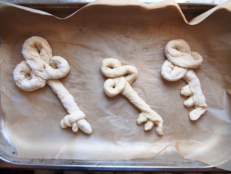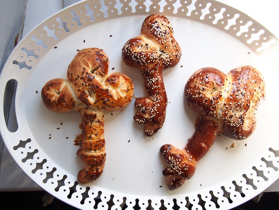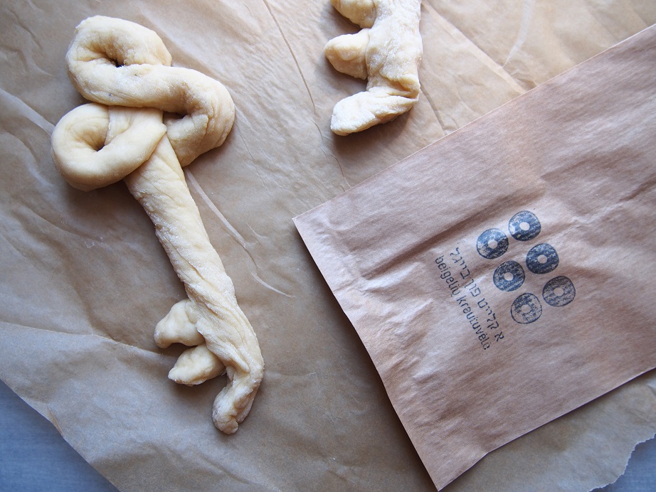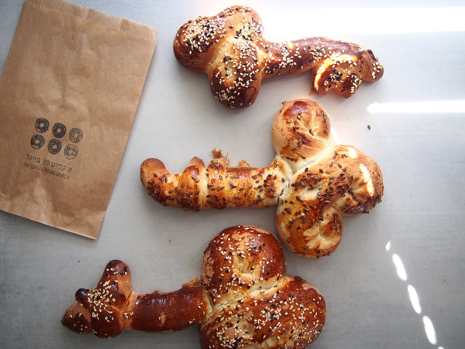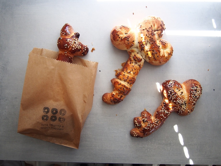Nuotraukose rakto formos chala kepta Beigelių krautuvėlėje specialiai pirmajam penktadieniui po Pesacho šventės.