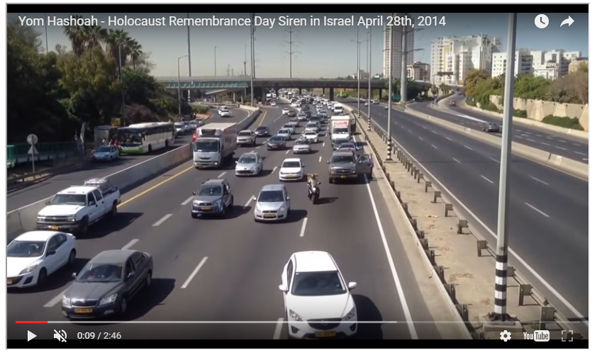 Nuo septintojo dešimtmečio pradžios garso sirena visoje Izraelio valstybėje dviem minutėms sustabdo eismą tyliam aukų paminėjimui. Sirena gaudžia saulei leidžiantis ir dar kartą tos datos 11 ryto. Visos radijo ir televizijos laidos tądien būna vienaip ar kitaip susijusios su žydų likimu Antrojo pasaulinio karo metu, rodoma nemažai interviu su išgyvenusiais Holokaustą. Netgi muzikos stotys adaptuoja programą, tinkančią Yom Hashoah nuotaikai. Šią dieną Izraelyje nevyksta jokios visuomenės pramogos, neveikia teatrai, kino teatrai, barai ir kitos viešos vietos.