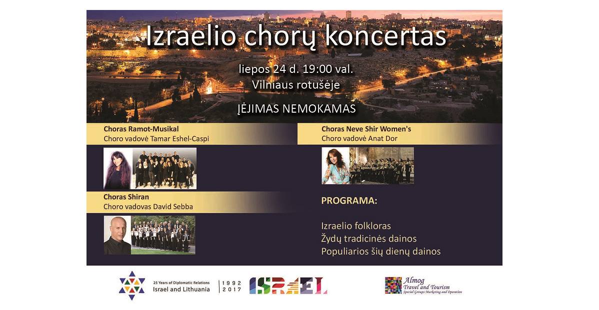 Izraelio ambasada Lietuvoje pristato trijų chorų koncertą Rotušėje.