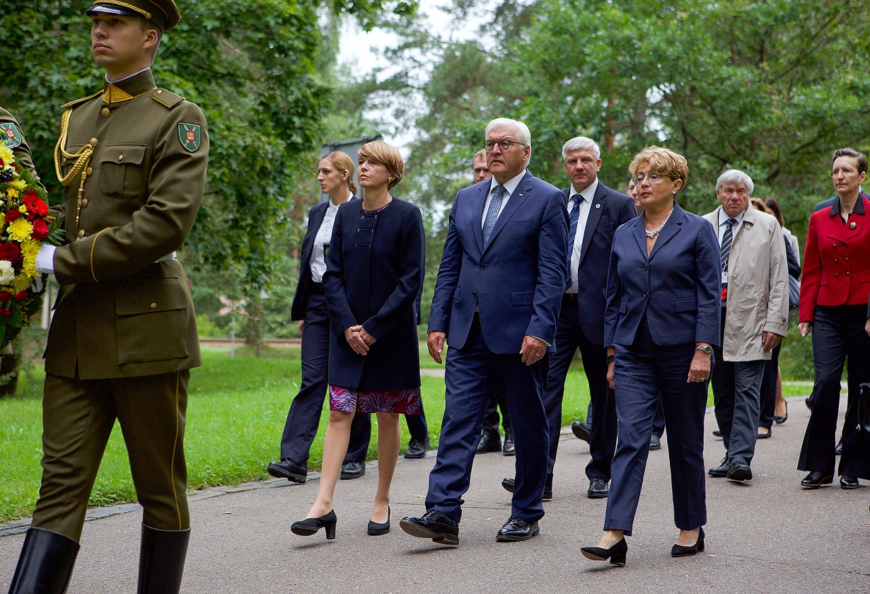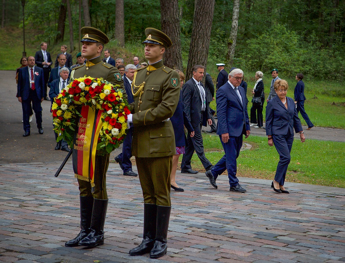 Vokietijos prezidentas Frankas Walteris Steinmeieris su žmona žmona Elke Buedenbender  rugpjūčio 25 d., penktadienį pagerbė Holokausto aukų atminimą Paneriuose drauge su Lietuvos žydų (litvakų) bendruomenės pirmininke Faina Kukliansky.
