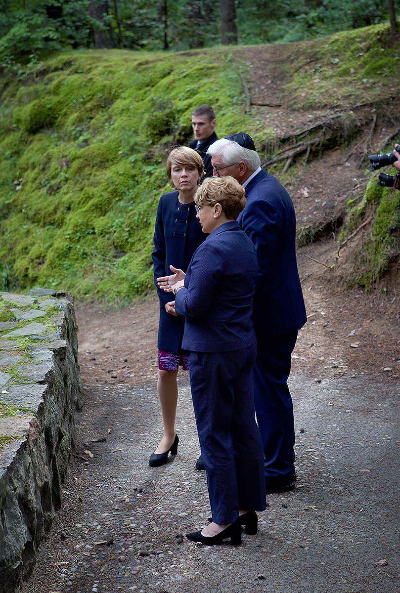 Vokietijos Prezidentas Frankas Walteris Steinmeieris, jo žmona Elke Buedenbender ir Lietuvos žydų (litvakų) bendruomenės pirmininkė Faina Kukliansky Paneriuose pagerbė Holokausto aukas