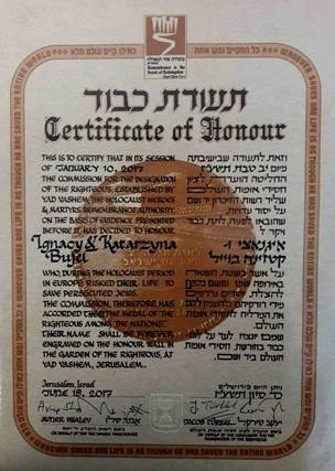 Ignacy ir Katarzyna Bujel Pasaulio Tautų Teisuolių vardą pelnė už tai, kad Antrojo pasaulinio karo metais savo namuose gelbėjo 24-verių metų žydų kilmės vilnietės Feigos Dusiackos gyvybę.