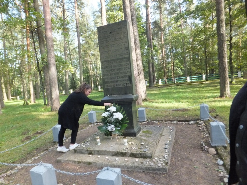 Nuvykus į masinę žydų žudynių vietą Žaliojoje girioje, susirinkusieji padėjo vainikus, pagerbė 5,5 tūkstančio Holokausto aukų. Panevėžio m. tarybos narys D. Simėnas prisiminė, kad jo senelio kaimynai, su kuriais artimai draugavo, buvo žydai, bet vieną dieną jie kažkur dingo ir tik praėjus kažkuriam laikui, išaiškėjo, kad kaimynų žydų šeima buvo sušaudyta.