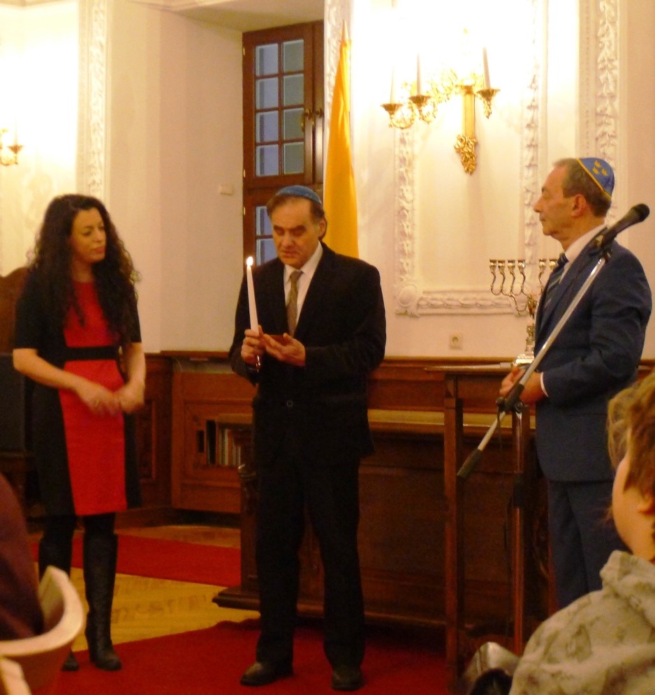 miesto valdžios, Katalikų bažnyčios atstovus, žmones, besirūpinančius litvakų paveldo išsaugojimu, istoriniais tyrinėjimais, lietuvių ir žydų santykių puoselėjimu. Izraelio ambasadoriaus pavaduotoja Efrat Hochstetler pasveikino visus susirinkusiuosius ir pasidžiaugė atgimstančia litvakų kultūra, vis stiprėjančia Izraelio ir Lietuvos valstybių draugyste. Vakaro metu širdis šilumos pripildė nuostabios tenoro Rafailo Karpio bei pianisto Dariaus Mažinto atliekamos jausmingos ir linksmos dainos jidiš kalba, o skrandžius pamalonino spurgos – tradicinis Chanukos skanėstas Izraelyje, ten vadinamos “suvganijot”. Todėl Izraelio ambasados iniciatyva Chanukai keptos spurgos Lietuvoje pavadintos “spurganiyot”. Nuo šiol ir Kauno žydai siūlo vartoti žodį “spurganiyot”.