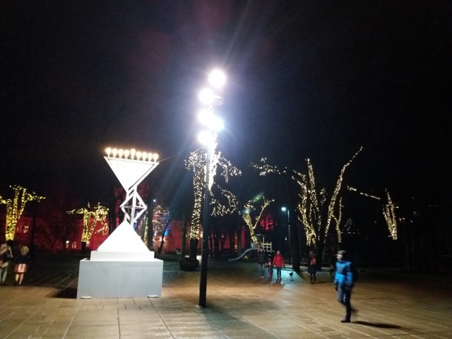 Kaune, miesto centre, uždegta paskutinė Chanukos žvakė, pabaigusi aštuonias dienas trukusį šviesų šventės maratoną. Šiemet kauniečiai degė žvakes ne tik savo namuose, bet ir turėjo ne vieną progą susiburti kartu, linksmintis, šokti, varžytis tradicinėje viktorinoje, klausytis nuotaikingos ir už širdies griebiančios žydų muzikos, iki soties pasivaišinti gardžiomis spurgomis ir bulviniais blynais, o susitikimo vietos buvo pačios įvairiausios: nuo prabanga tviskančios Kauno Rotušės, jaukios muzikinio klubo erdvės iki šeiminės bendruomenės aplinkos ir lauko palapinės. Savo talentu ir dainomis širdis skaidrino Rafailas Karpis ir Darius Mažintas bei pirmą kartą Kaune viešėjęs buvusių kauniečių ir rygiečių ansamblis su jauna vokaliste, savito balso savininke, kylančia žvaigžde Ania Judelson priešakyje.