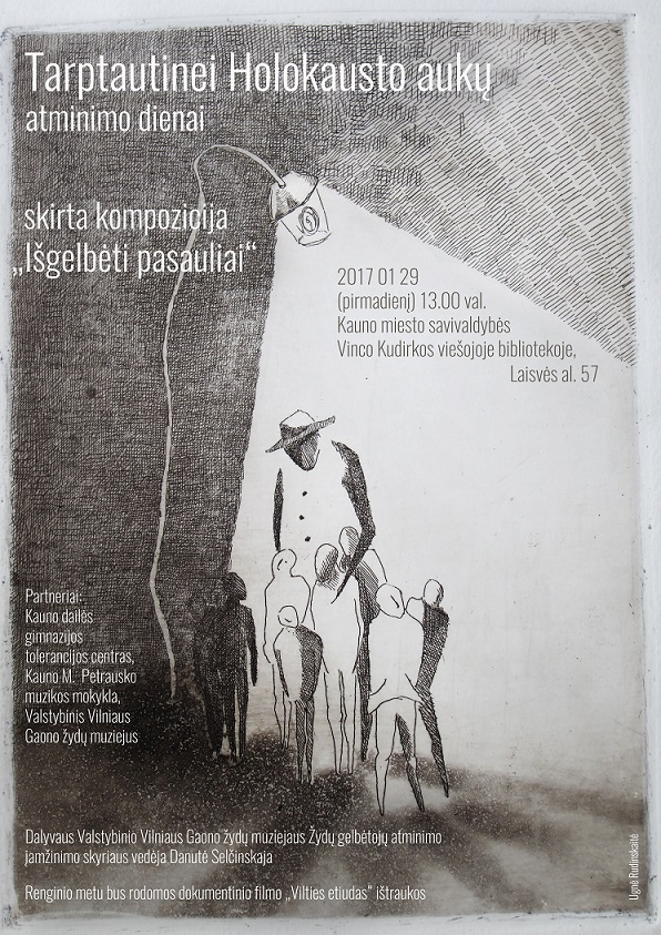 Sausio 29 d. 13 val. Suaugusiųjų vartotojų aptarnavimo skyriuje, Laisvės al. 57, vyks Tarptautinei Holokausto aukų atminimo dienai skirta kompozicija „Išgelbėti pasauliai“. Dalyvaus Valstybinio Vilniaus Gaono žydų muziejaus Žydų gelbėjimo ir atminimo įamžinimo skyriaus vedėja Danutė Selčinskaja. Renginio metu bus rodomos dokumentinio filmo „Vilties etiudas“ ištraukos.