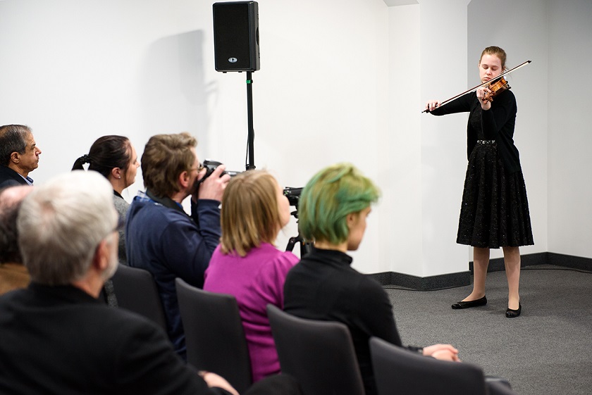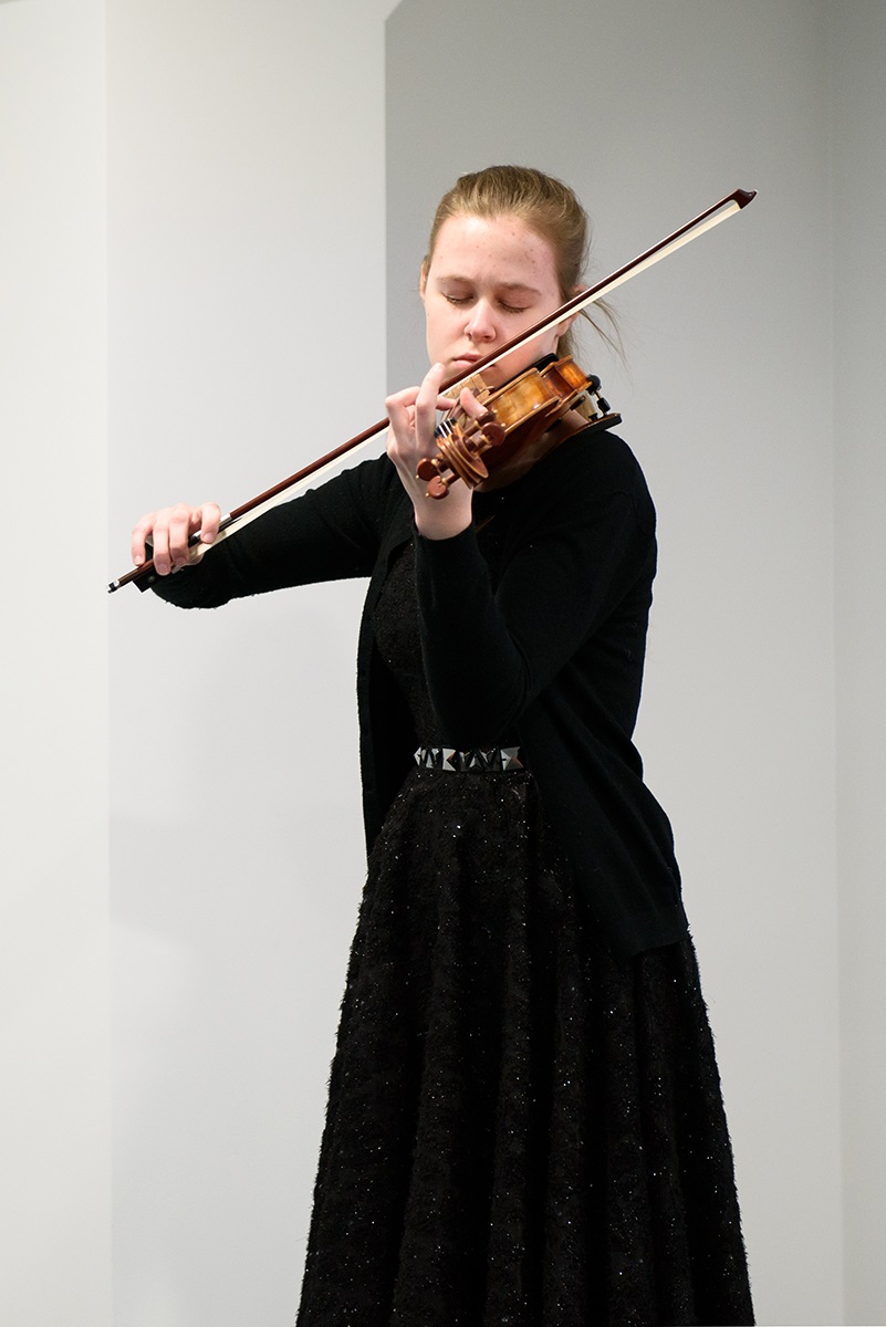 Icchoko Rudaševskio knygos pristatymas prasidėjo maestro A. Šenderovo kūriniu Cantus in memoriam Jascha Heifetz, kurį svečiams ir visiems prarastiems jauniesiems žydų talentams dedikavo 16-iolikmetė smuikininkė, tarptautinių konkursų laureatė Ugnė Liepa Žuklytė.