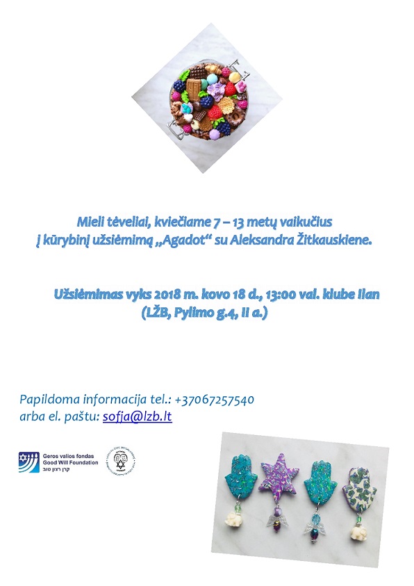 Ilan klubas kviečia vaikus į Užsiėmimą “Agadot” 2018-03-142018-03-15 ← Abos Kovnerio – žydų rašytojo ir kovotojo 100-mečio minėjimas LŽB atidengta atminimo lentelė žydų pasipriešinimo kovų dalyviui Abai Kovneriui →