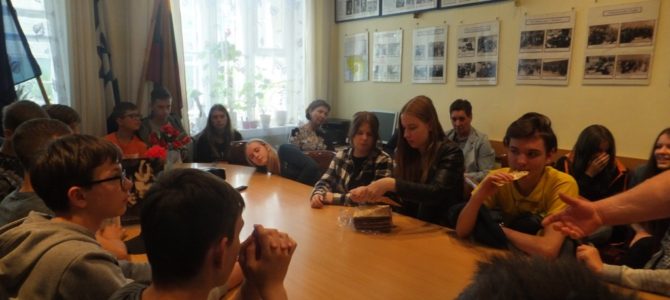 Susitikimo pabaigoje moksleiviai vaišinosi maca – žydų duona, jiems įteikti žydiški kalendoriai, kuriuos išleido Lietuvos žydų bendruomenė. Kalendoriaus viršelyje – Pasaulio tautų teisuolis K.Grinius su šeima bei aprašyta jo gyvenimo istorija, kai vokiečių okupacijos metais jis gelbėjo žydus, rizikuodamas savo ir savo šeimos gyvybėmis.