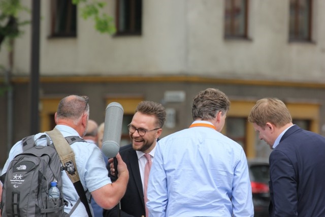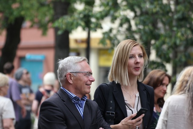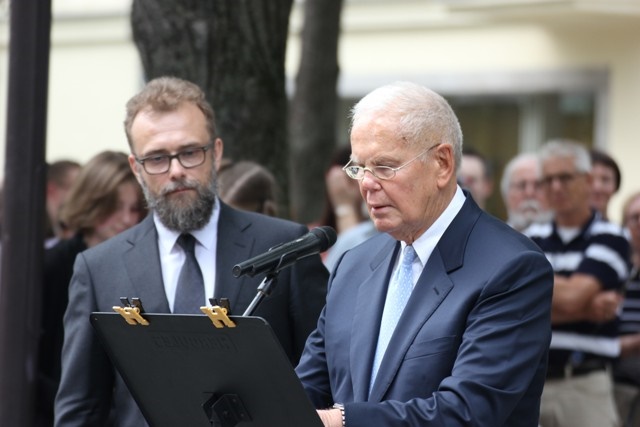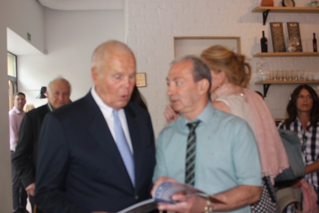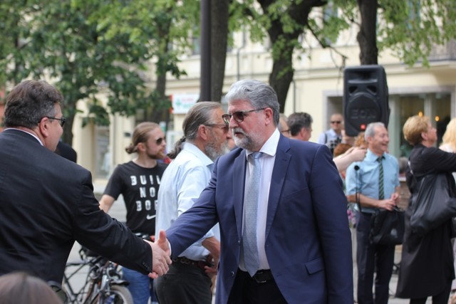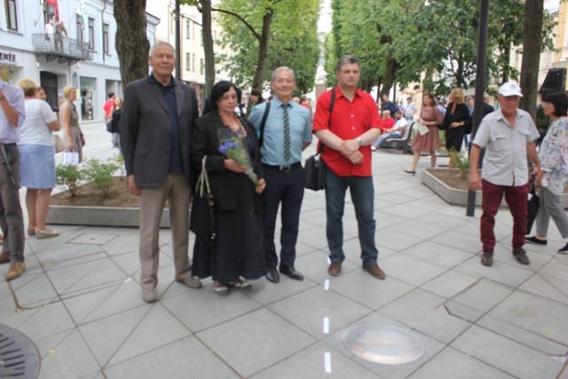 Buvęs Kauno vicemeras, žydų kultūrai ir istorijai neabejingas žmogus, Vytautas Vasilenka bei Lietuvos Sąjūdžio Kauno skyriaus vadovai Raimundas Kaminskas ir Julija Iskevičienė šakia KŽB pirmininkas Gercas Žakas.