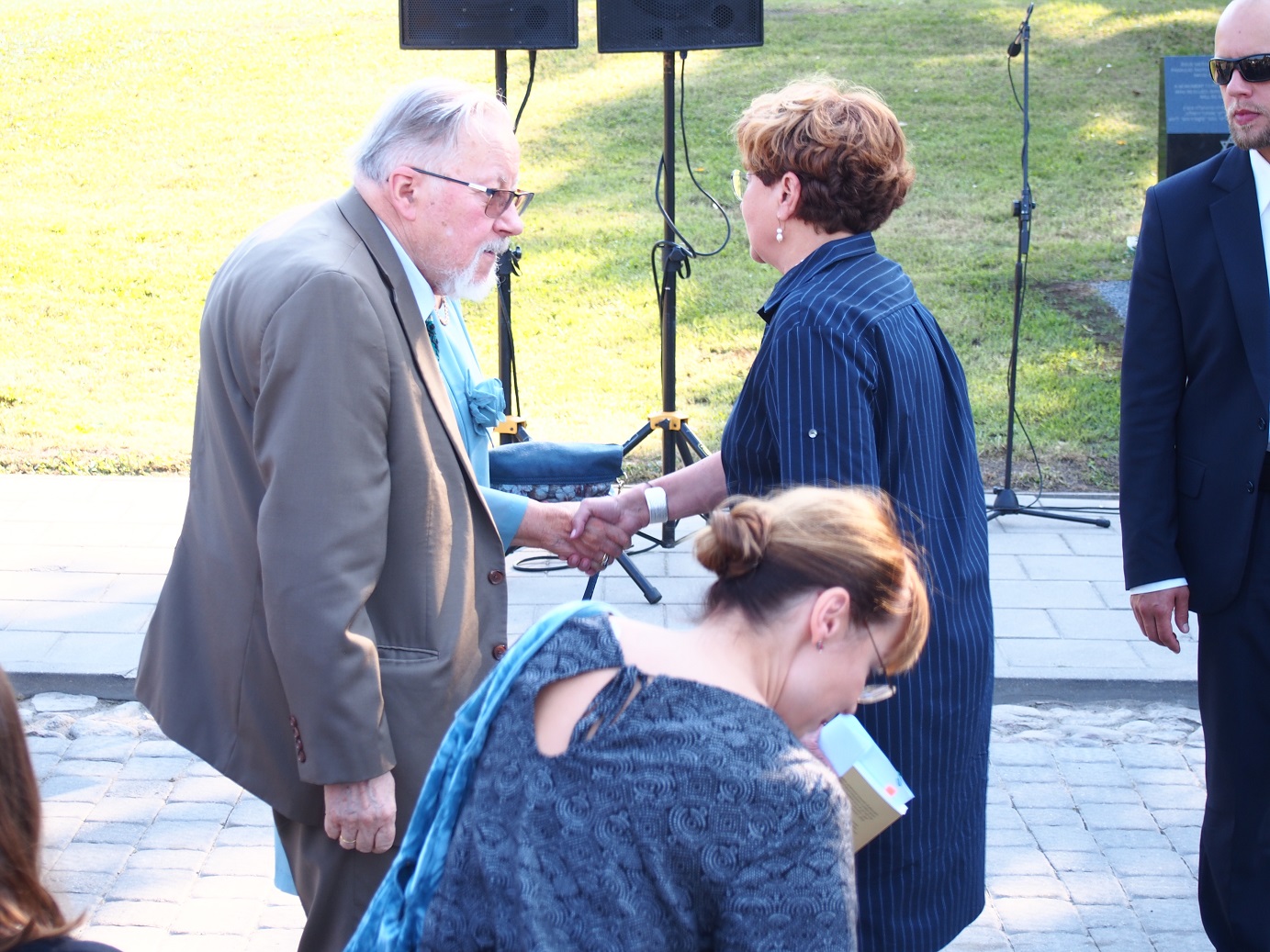 Paminklo iniciatorė, Lietuvos žydų bendruomenės pirmininkė Faina Kukliansky ceremonijoje asmeniškai dėkojo jos giminę nuo mirties išgelbėjusioms Žukauskų, Matukevičių, Daugevičių, Lukaševičių šeimoms.