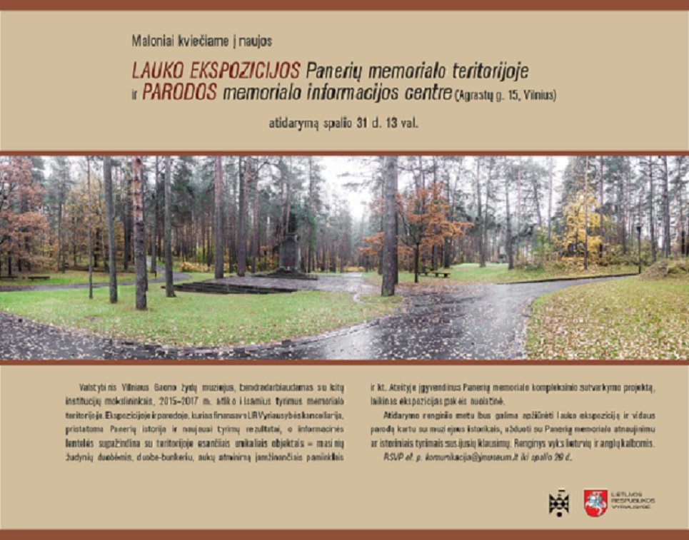 Spalio 31 d. atidaroma nauja ekspozicija Paneriuose – kadaise vilniečių pamėgtoje vasarvietėje, kuri Antrojo pasaulinio karo metais tapo žiaurių Holokausto įvykių liudininke. Ekspoziciją apie Panerių istoriją, aukų atminimo įamžinimą ir naujausius tyrimus parengė Valstybinis Vilniaus Gaono žydų muziejus, finansavo LR Vyriausybės kanceliarija.