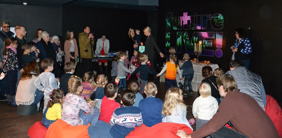 į LŽB organizuotą bendruomenės vaikų Chanuką, kuri vyko Vilniaus PC CUP renginių salėje “Future Live” susirinko 70 vaiku, uždegė Chanukos žvakutę, dainavo šventės daineles jidish ir hebraju kalbomis.