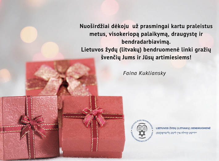 LŽB pirmininkės Fainos Kukliansky sveikinimas 2018-12-212019-01-05 ← Panevėžio žydų bendruomenės sveikinimas Poeto Osipo Mandelštamo mirties metinių minėjimas →