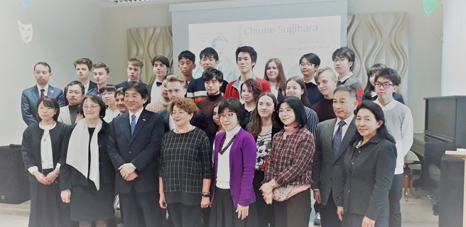 Vilniaus Šolomo Aleichemo ORT gimnazijoje Lietuvos žydų bendruomenės pirmininkė Faina Kukliansky ir Japonijos ambasadorius J.E. p. Shiro Yamasaki atidengė lentelę, skirtą žydų gelbėtojo Ch. Sugiharos atminimui.