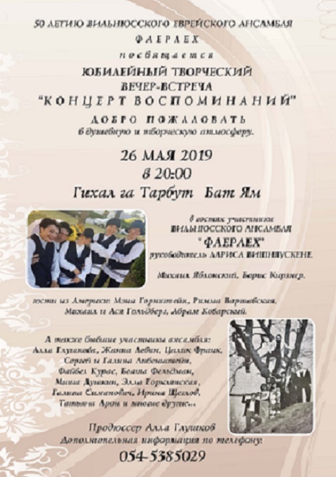 Žydų dainų ir šokių ansamblis „Fajerlech“ ruošiasi koncertui Izraelyje 2019-03-282019-03-30 ← Kas Lietuvoje sankcionavo institucinį antisemitizmą? Kompozitorius Anatolijus Šendrovas. In memoriam →