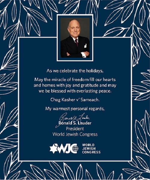 Pasaulio žydų kongreso prezidentas Ronald S. Lauder sveikina su Pesachu 2019-04-17 ← LŽB klube „Ilan vyko ciklas užsiėmimų, skirtų „Pesacho“ šventei Pesach – mūsų laisvės simbolis →