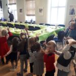Po filmo vaikai atsistojo ir visi suvaidino išėjimą, imituodami sunkią kelionę pagal muzikos vadovės Jelenos Andrejevos nurodymą. Mažųjų linksmi veidai rodė, kad jiems įdomu. Po to visi smagiai dainavo išmoktas Pesacho dainas. Jiems padėjo madrichės Avital, Elzė, Liora, jos atsakinėjo ir į smalsių vaikų klausimus.