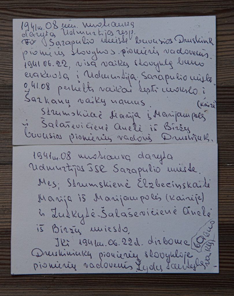 Vaikai į stovyklą Druskininkuose pradėjo rinktis 1941m. birželio pradžioje. Šeštadienį, birželio 21d vaikai rengėsi stovyklos atidarymui, lyginosi drabužėlius, tvarkėsi. Šeimininkės ruošė šventinę vakarienę. Anelė Zutkytė, būdama 16 metų pradėjo dirbti pionierių stovyklos vadove, jai paskyrė septynmečių būrį. Jos prisiminimus, kuriais dalinosi po karo, išsaugojo šeima, abu Anelės Zutkytės Šalaševičienės sūnūs. Čia pateikiame jos prisiminimus Su Anele stovykloje vadove dirbo ir Marija Elzbecinskaitė Strumskienė.