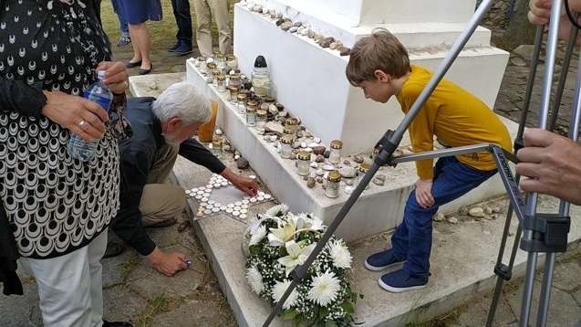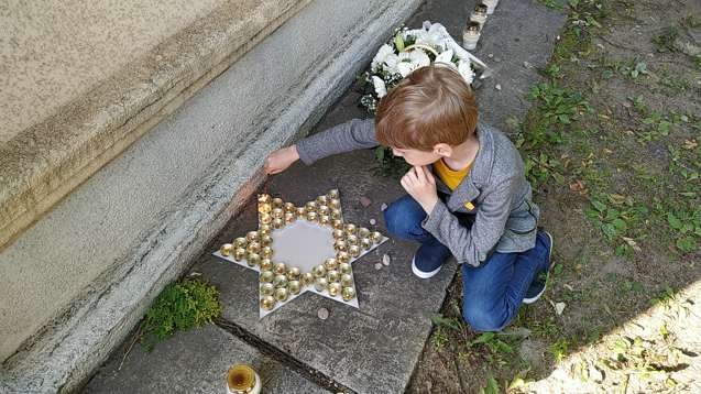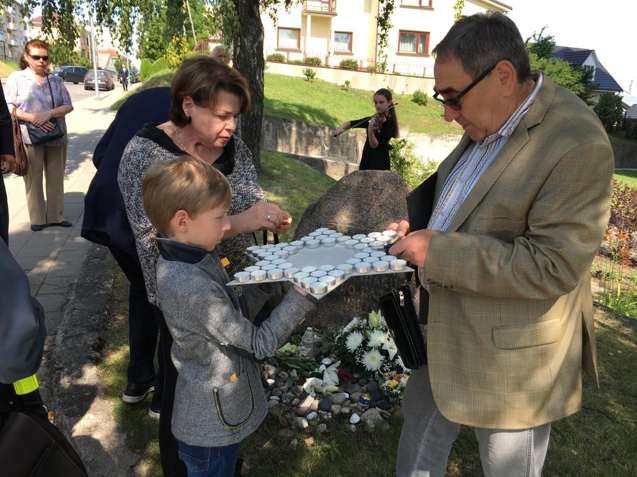 Skambant Šiaulių Sauliaus Sondeckio menų gimnazijos smuikininkių atliekamoms žydiškoms melodijoms prie Šiaulių geto vartų paminklinio akmens padėtos gėlės, atminimo akmenukai, iš degančių žvakučių suformuota Dovydo žvaigždė.