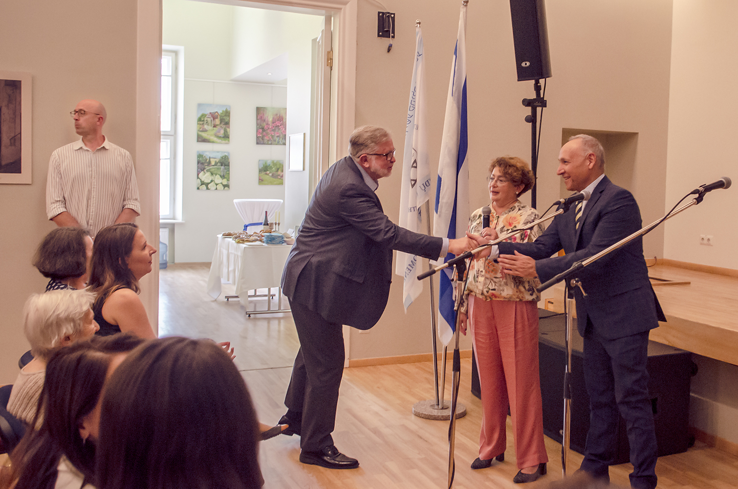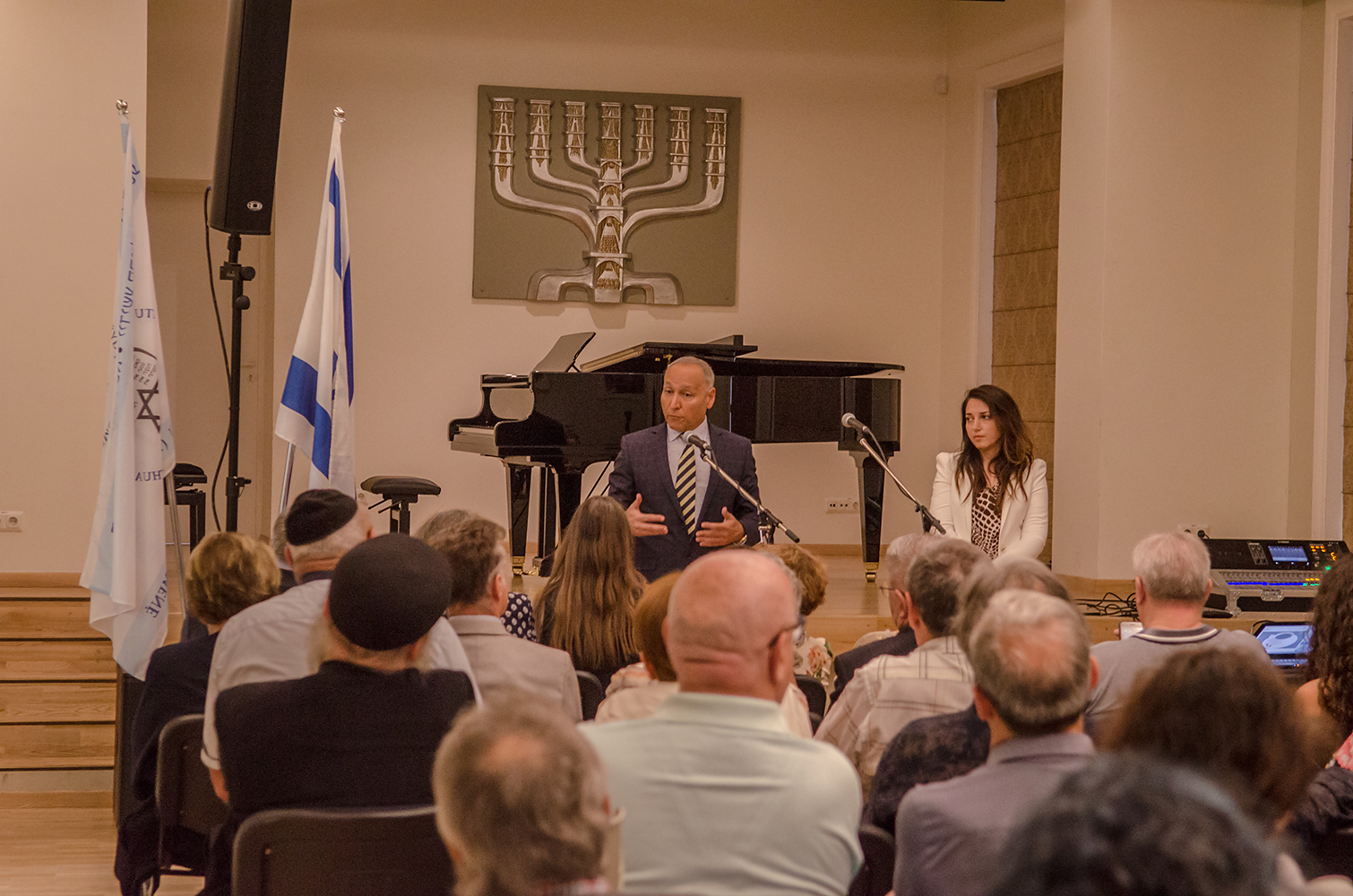 LŽB pirmininkė Faina Kukliansky, pasveikinusį naująjį ambasadorių atvykus į Vilnių, pristatė jam J.Heifetzo salėje susirinkusius bendruomenės narius.