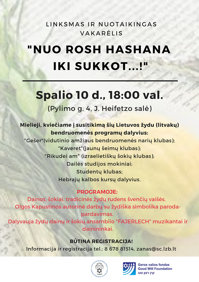Kviečiame į linksmą vakarėlį 2019-10-072019-10-10 ← Jom Kippur Vilniaus Choralinėje sinagogoje Roš Ha Šana šventė Šiaulių krašto žydų bendruomenėje →
