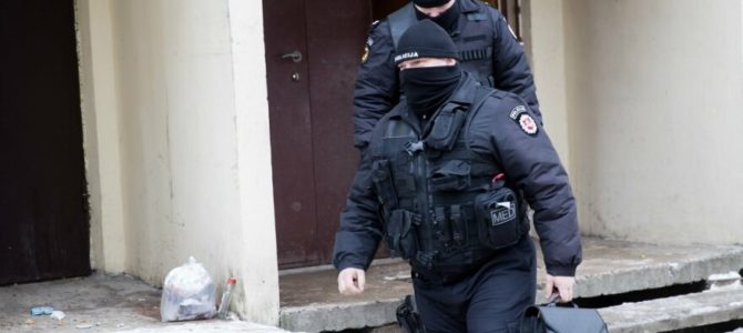 Anksti ryte J. Balčikonio gatvėje ant pastato sienos pastebėtas dažais išpurkštas užrašas ir svastikos ženklas, o šalia įėjimo durų padėtas plastikinis maišelis su daiktu, panašiu į savadarbį sprogmenį.