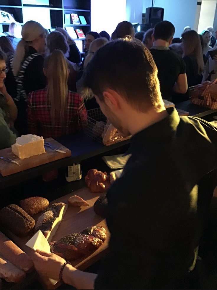 „Juk viskas prasideda nuo duonos ir sviesto, nesvarbu – tai restoranas ar namai. Tad ir čia noriu jus pavaišinti ką tik iškepta duona su sviestu, nes tai yra pradžios simbolis“, – apie sumanymą netikėtai nustebinti susirinkusius svečius kalbėjo idėjų moderatorius A.Ivanauskas.