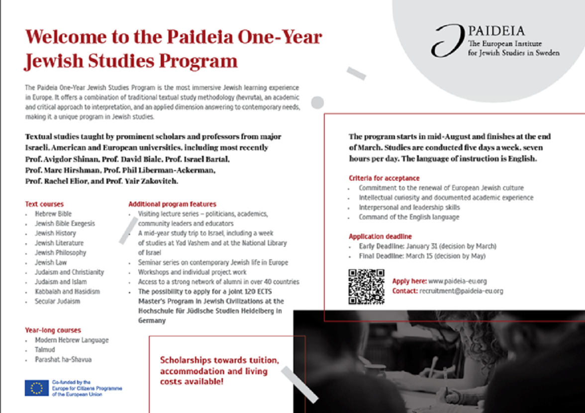 Paideia – Europos institutas kviečia mokytis vienerių metų žydų studijų programoje