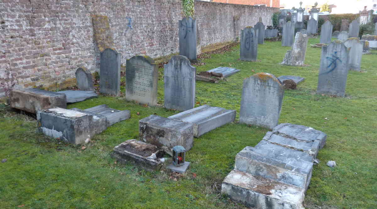 Geilenkircheno mieste Šiaurės Reine-Vestfalijoje du vyrai  apvertė antkapius  žydų kapinėse ir apipurškė juos mėlynais dažais. Antisemitinis incidentas įvyko sekmadienį.