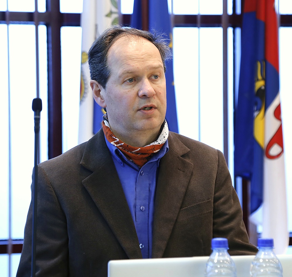 Savivaldybėje pirmadienio vakarą Pasaulio teisuolių skvero ir jo prieigų sutvarkymo ir meninių akcentų projektinius pasiūlymus pristatė meninės idėjos autorius dizaineris Adas Toleikis.