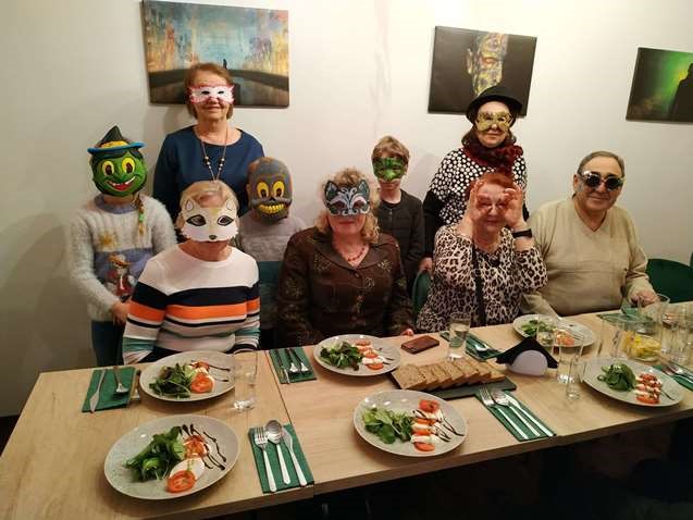 Su kaukėmis atvyko ir maži, ir dideli. Klausydamiesi žydiškos muzikos, visi maloniai bendravo, vaišinosi, gėrė kavą, arbatą su tradicinėmis Hamano ausimis – bandelėmis Hamentašen.