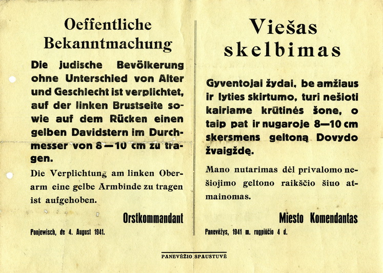 Likusieji žydai suvaryti gyventi į getus. Jie privalėjo dėvėti skiriamuosius ženklus – specialų raištį su geltona Dovydo žvaigžde, įsigaliojo ir daugybė kitų reikalavimų bei draudimų.